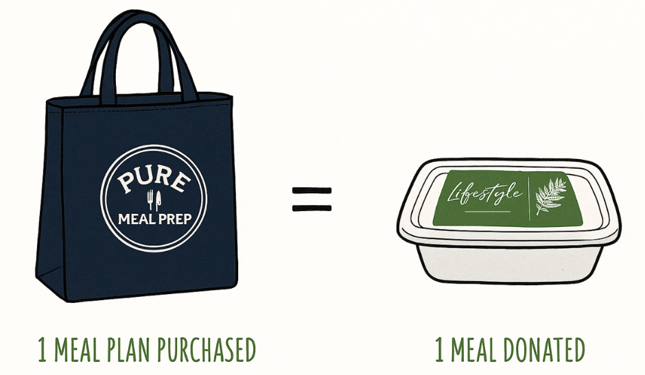 ORGANIC MEAL PREP PLAN PURCHASED, WE DONATE A MEAL TO AN INDIVIDUAL, FAMILY, OR ORGANIZATION IN OUR COMMUNITY THAT NEEDS SUPPORT.