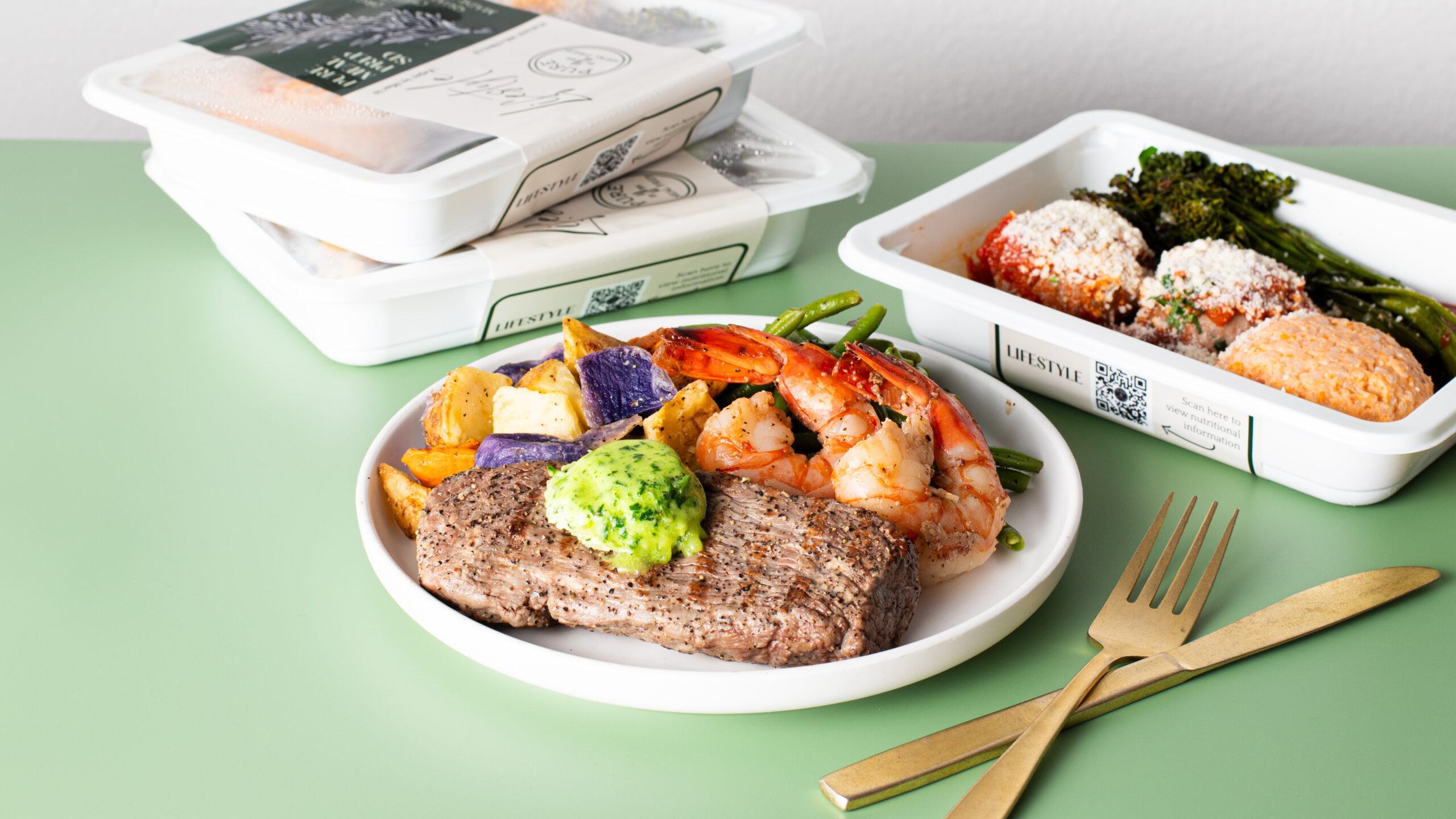 The meal container is both microwave & dishwasher-safe. Crack the lid of the container ( so the moisture stays mostly in) and place it in the microwave for 2 minutes on full power or until your desired heat. If the meal includes a salad, we recommend heating only the protein and keeping the salad chilled. For burgers, we recommend heating the patty separately from the bun for a more enjoyable taste.